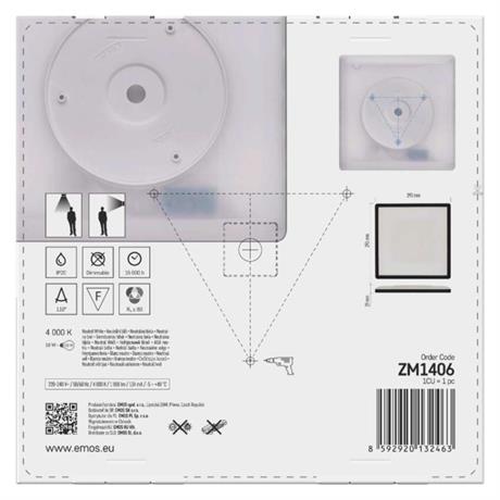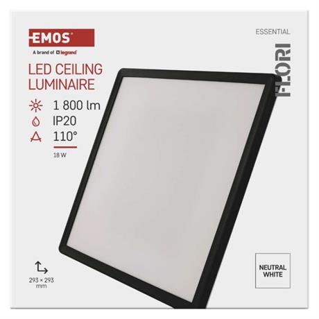 EMOS LED přisazené svítidlo FLORI čtvercové, černé, 18W, neutrální bílá