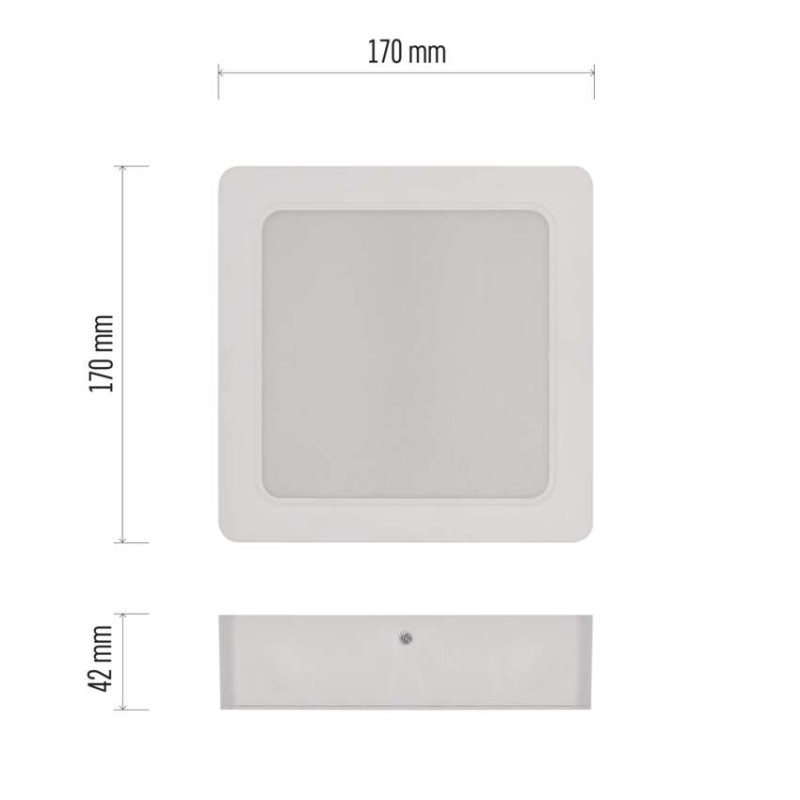 barva světla: neutrální bílá|barva těla: bílá|dálkový ovladač: ne|do chodby a na schodiště: ano|do dílny a garáže: ano|do kanceláře: ne|do koupelny: ne|do kuchyně: ano|do obýváku, ložnice a dětského pokoje: ne|dosah senzoru: nemá senzor|flicker-free: ano|frekvence: 50/60 Hz|index podání barev (CRI): Ra > 80|kategorie: ESSENTIAL|krytí: IP20|materiál difuzoru: plast (PC)|materiál LGP: neuvádí se|materiál těla: plast (PC)|montážní otvor: neuvádí se|možnost stmívání: ne|náhrada za žárovku: 110 W|napětí: 220–240 V|na zahradu a balkon: ne|pohybový senzor: ne|příkon: 18 W|prodejní obal: 1 ks, krabice|proud: 157 mA|řada: RUBIC|rozměr: 170 × 170 × 42 mm|světelná účinnost: 100 lm/W|světelný tok: 1 800 lm|teplota chromatičnosti: 4 000 K|tvar: čtverec|typ difuzoru: mléčný|typ svítidla: klasické svítidlo|účiník: > 0,7|UGR<: neuvádí se|úhel vyzařování: 120°|umístění: stropní/nástěnné|výstupní proud ze zdroje: 50 mA|záruční doba: 2 roky|zdroj světla: LED|životnost: 25 000 hodin|způsob montáže: přis