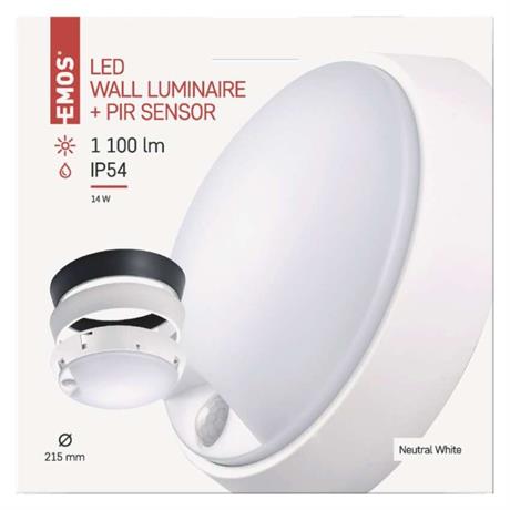 EMOS LED přisazené svítidlo ZURI s pohyb. čidl., kruhové č/b 14W n.b.