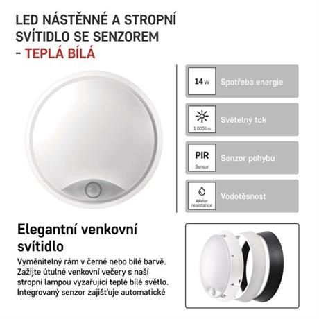 Můžete jej mít v celkem osmi variantách dle barvy, tvaru, stupně krytí, funkce, nebo barvy světla. Přisazené svítidlo má klasický kruhový tvar a uvnitř ukrývá moderní, velmi úsporné a trvanlivé LED diody s vysokým výkonem. Životnost svítidla je predikována na 25 000 hodin. Během nich vám bude krycí mléčný difuzor posílat světlo rovnoměrně a příjemně v širokém úhlu 120°. Výhodou oblíbeného svítidla je vysoký stupeň krytí. Svítidlo je tak vhodné do prostor s vysokou vlhkostí. Model je také vybaven chytrým PIR čidlem pohybu, který svítidlo aktivuje jen, když je třeba.