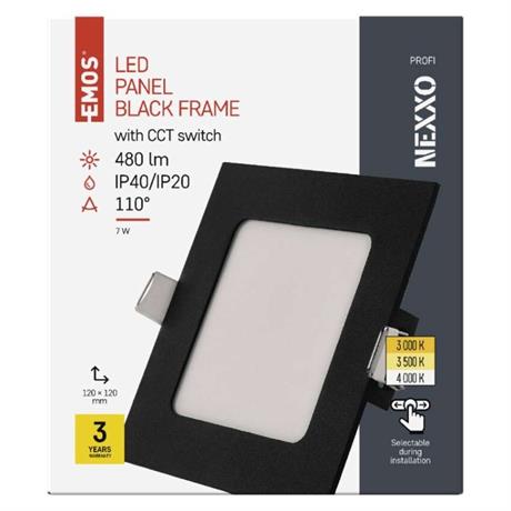 EMOS LED vestavné svítidlo NEXXO, čtvercové, černé, 7W, se změnou CCT
