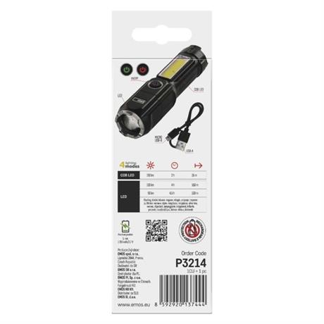 barva: černá|baterie součástí balení: ano|doba nabíjení: 2 h|doba svícení: 2–4,5 h|doba svícení detail: LED 100 % – 4 h, LED 50 % – 4,5 h, COB LED 100 % – 2 h|dosvit: LED 100 % – 150 m, LED 50 % – 130 m, COB LED 100 % – 15 m|fokus: ano|hmotnost: 80 g|LED indikace nabíjení: ano|LED indikace stavu akumulátoru: neuvádí se|materiál: plast|maximální dosvit: 150 m|maximální světelný tok: 150 lm|nabíjecí: ano|napájení: Li-Ion 18650|nárazuvzdornost: ano|počet režimů svícení: 4|příslušenství: napájecí kabel|prodejní obal: 1 ks, krabice|režimy svícení: LED 100 %, LED 50 %, LED – blikání, COB LED 100 %|rozměr: 130 × 35 × 35 mm|speciální funkce: funkce ochrany baterie|světelný tok: LED 100 % – 100 lm, LED 50 % – 50 lm, COB LED 100 % – 150 lm|typ baterie: 1 200 mAh/3,7 V|typ napájecího konektoru: micro USB B|voděodolnost: IP44|vybavení: neuvádí se|záruční doba: 2 roky|zdroj světla: LED + COB LED|značka: EMOS