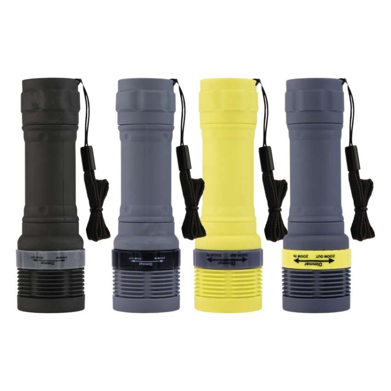 Fokus, který slouží pro změnu světelného kuželu tzn. buď ho zúží, daný dosvit je na maximální úrovni, nebo ho rozšíří a světelný kužel je na maximální úrovni. Krytí IP43. Nárazuvzdorná do 1 m.