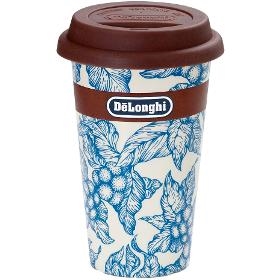 Termohrnek. De'Longhi DLSC064. . Ručně vyrobený termohrnek s dvojitou stěnou a atraktivním designem. Keramický hrnek se silikonovým víkem a dvojitou stěnou nepálí v ruce a udrží nápoj teplý po delší dobu. Lze používat v mikrovlnné troubě a mýt v myčce nádobí. S krásným modrým květinovým designem