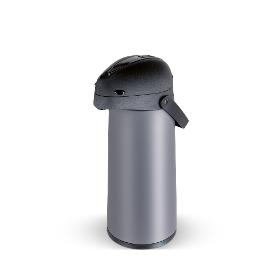 Termoska. Lamart LT4081. . Objem 1,9L. Materiál plast / sklo. Barva šedá / černá. . Termoska s dávkovací pumpičkou vyrobena z vysoce odolného plastu s vnitřní skleněnou vložkou.. Vložka má termoizolační vlastnosti pro udržení teplého i studeného nápoje.. Se sklopným držadlem pro snadné přenášení.