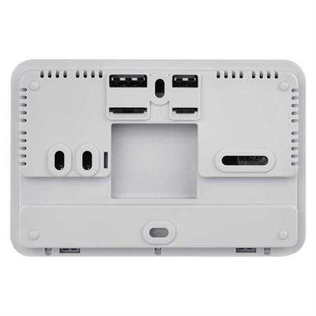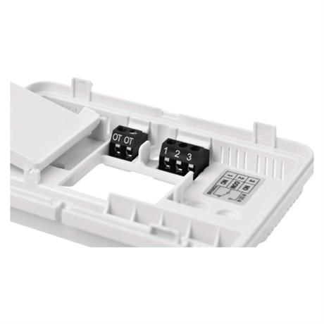 Napájení drátového termostatu zajišťují dvě 1,5 V AA baterie. Na potřebu výměny baterie vás upozorní indikátor stavu baterie. Baterie jsou součástí balení stejně jako dva šroubky a dvě hmoždinky nutné k uchycení termostatu na stěnu.