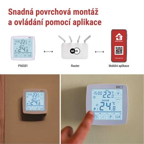 typ ovládáníprogramovatelný elektronický pokojový termostat, možnost ovládaní přes mobil (iOS, Android)
