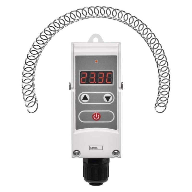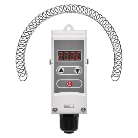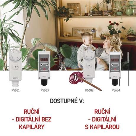 barva: bílá|délka kapilárového čidla: neuvádí se|dosah ve volném prostoru: neuvádí se|druh regulace: vytápěcí a chladící systém|funkce ON/OFF: ano|funkce prázdniny: ne|funkce Set-back: neuvádí se|kalibrace teploty: ne|měření teploty: 5 °C až 80 °C, rozlišení 0,1 °C|možnost propojení s dalšími detektory: neuvádí se|napájení: 230 V AC|napájení brány: neuvádí se|napájení přijímače: neuvádí se|napájení vysílače: neuvádí se|nastavení teploty: 5 °C až 80 °C, po 0,1 °C|nastavitelný rozptyl teploty: 0,1 °C až 15 °C, po 0,1 °C|ochrana proti zamrznutí: ne|počet programů: neuvádí se|podsvícený displej: ano|pracovní frekvence: neuvádí se|prodejní obal: 1 ks, krabička|protokol: –|rozměr: 41 × 50 × 138 mm|rozměr brány: neuvádí se|rozměr přijímače: neuvádí se|rozměr vysílače: neuvádí se|součást balení: neuvádí se|spínaná zátěž: 5 A odporově, 1,5 A induktivně|spínání: napěťové 230 V AC, 50 Hz|typ nastavení teploty: manuálně|typ ovládání: manuální termostat|typ termostatu: drátový příložný