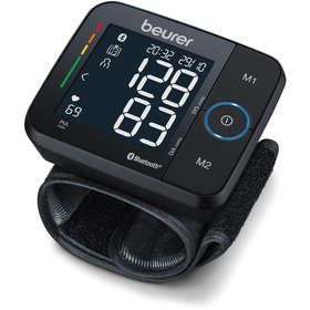 Tlakoměr/pulsoměr na zápěstí. 2x60 pamětí. Na zápěstí 13,5 -21,5 cm. Bezdrátové připojení s vaším smartphonem pomocí Bluetooth. Inflační technologie. Aplikace Beurer Health Manager