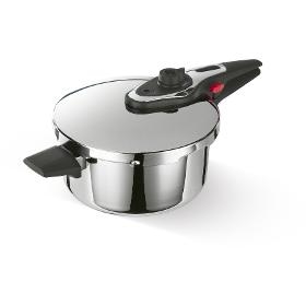 Tlakový hrnec. Lamart LT1311. . Tlakový hrnec 4L . Tento tlakový hrnec je vyroben z vysoce kvalitní nerezavějící oceli 18/10 a velmi odolného plastu. Je vybaven masivní rukojetí pro pohodlné a bezpečné uchopení.. Čtyři pojistky, indikátor tlaku a dvojí bezpečnostní ventil zajišťují maximální bezpečnost při vaření. Sendvičové dno umožňuje rovnoměrné rozložení tepla, což zkracuje dobu vaření a šetří energii. Moderní design hrnce dodá vaší kuchyni elegantní vzhled.