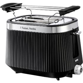 Topinkovač. RUSSELL HOBBS 26760-56 Brontë Matte Black. . Prémiový texturovaný design. Broušené a lesklé chromové prvky. Topinkovač na 2 plátky pečiva. Páčka pro rychlé nadzvednutí – zkontrolujte topinku bez nutnosti ukončování cyklu opékání. Vysoké nadzvednutí – pro snadné vyjmutí pečiva. Funkce - rozmrazení, opětovné ohřátí a přerušení. Vyjímatelný tác na drobky. Mřížka na rozpékání pečiva. . Barva černá