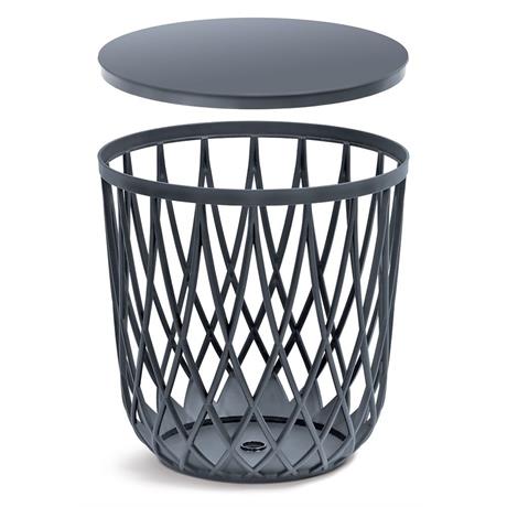 Plastový designový koš, objem 55 l, víko, antracit, odolný materiál - použití v interiéru i exteriéru, průměr 44,7 cm, výška 45 cm.