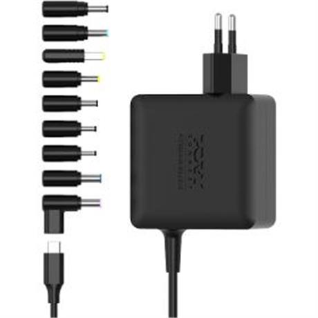 Univerzální adaptér. Port Connect 65W Univerzální adaptér GaN2 USB-C (904065UWEU). . Výstupní výkon: 65 W. . Univerzální provedení pro USB-C i proprietární napájecí konektory. Technologie GaN2 pro vyšší účinnost a kompaktní rozměry. USB-C Power Delivery s inteligentní regulací výkonu. Maximální výstupní výkon 65 W. Sada 9 vyměnitelných napájecích koncovek. Ochrana proti přepětí, přehřátí a zkratu. . Rozměry (VxŠxH): 6,2 x 6,2 x 3,0 cm. Hmotnost: 210g. Barva: Černá.
