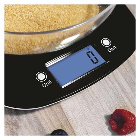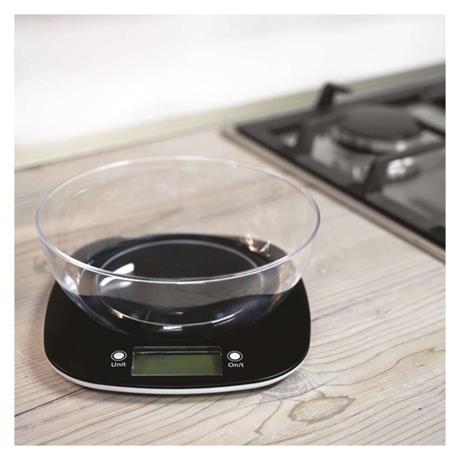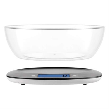 Součástí váhy je plastová miska, ve které můžete vážit cukr, ořechy, olej nebo porci zeleniny. Povrch vážicí plochy z ABS plastu je tvarován tak, aby misku udržel a zabránil sklouznutí. Potraviny můžete vážit také bez misky přímo na vážicí ploše nebo použít třeba talíř. Jednoduchý design váhy se hodí do každé moderní kuchyně. Pokud pečete často, váhu si nechte po ruce na kuchyňské lince.