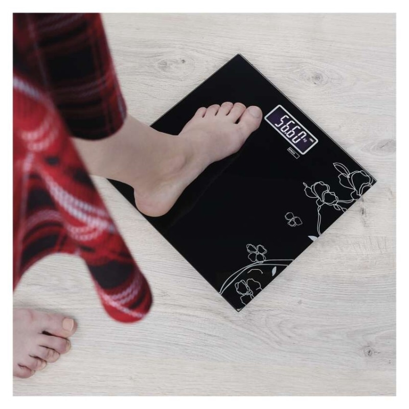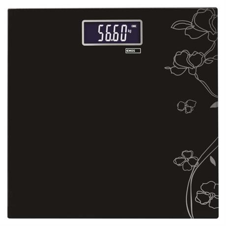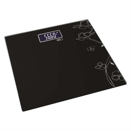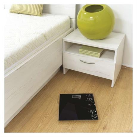 osobní váha, LCD podsvícený displej, tvrzené sklo, max. zátěž: 180 kg, přesnost vážení: 100 g, jednotky váhy: kg, lb, St, indikátor přetížení, automatické vypnutí: po 20 sekundách, indikace slabých baterií, barva: černá, napájení: 2× AAA baterie (součástí balení), rozměr: 25 × 284 × 284 mm