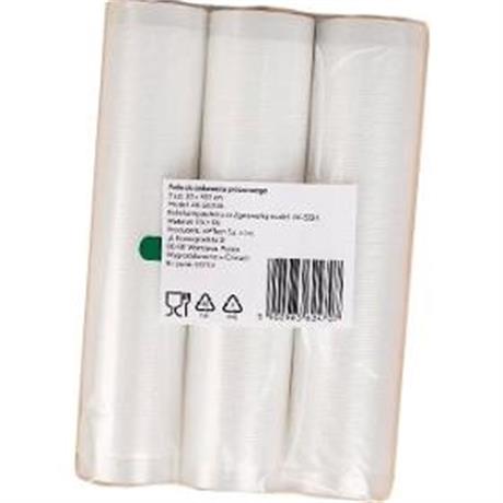 Fólie do vakuovačky. HUSLOG AK-540234 3ks. . Vakuové fólie jsou ideální pro vzduchotěsné balení masa, uzenin, ryb nebo sušeného ovoce a zeleniny. Fólie poskytuje ochranu proti bakteriím a mikroorganismům, což prodlužuje čerstvost, vůni, chuť a výživovou hodnotu pokrmu. Je ideálním řešením pro vaření metodou sous-vide/pomalé vaření. . 3 kusy fólie o rozměrech 20 x 300 cm. Kompatibilní s vakuovačkou Hoffen i Huslog AK-5334. Materiál PA + PE. . Barva transparentní