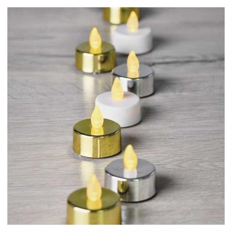 Patříte k milovníkům svíček, ale máte strach, že od nich něco vzplane? Pak vás jistě okouzlí praktické stříbrné svíčky, které jako zdroj světla využívají energeticky úsporné LED diody vyzařující světlo teplé bílé barvy (tzv. vintage). Využijete je nejen v průběhu vánočních večerů, ale váš domov ozdobí celoročně. Proměnit se mohou v dokonalý doplněk na oslavu nebo svatbu, použít je můžete v dětském pokoji, na terase, balkónu a jiných místech, kde to dosud nebylo z důvodu bezpečnosti možné. Svíčky jsou napájeny CR2032 bateriemi a vydrží svítit mnohonásobně déle, než svíčky klasické.