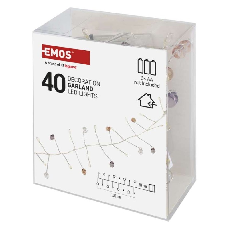 EMOS LED girlanda – kamínky, 1,2 m, 3x AA, vnitřní, teplá bílá, časovač