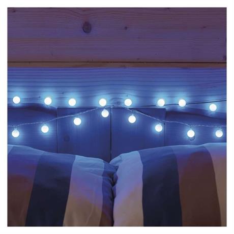 barva drátu: bílá|barva světla: modrá|časovač: ano|dálkový ovladač: ne|délka přívodu: 5 m|funkce: svítí|krytí: IP44|LED mezera: 10 cm|materiál: PVC|možnost propojení: ne|počet LED: 40|použití: venkovní i vnitřní|příkon: 3,6 W|prodejní obal: 1 ks, krabice|produkt: řetěz|pro výšku stromu: 100 cm|rozměr: 4 m|tvar: kulička|typ napájení: síťový adaptér|velikost LED: 25 mm|vstupní napětí: 230 V AC|výstupní napětí: 31 V DC|záruční doba: 2 roky|životnost: 10 000 hodin