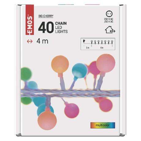 EMOS LED světelný cherry řetěz – kuličky 2,5 cm, 4 m, venkovní i vnitřní, multicolor, časovač