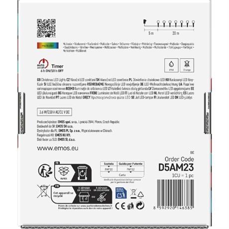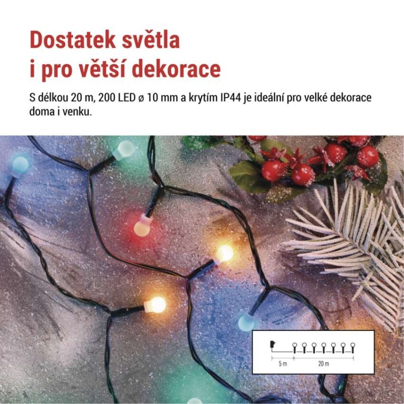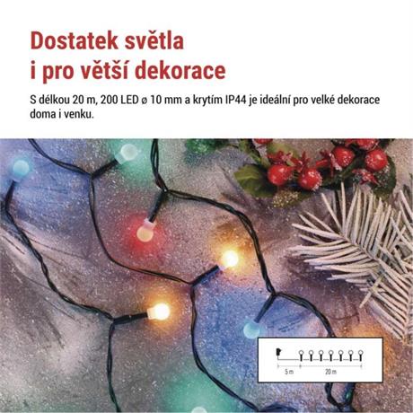 EMOS LED vánoční cherry řetěz – kuličky, 20 m, venkovní i vnitřní, multicolor, programy,časovač