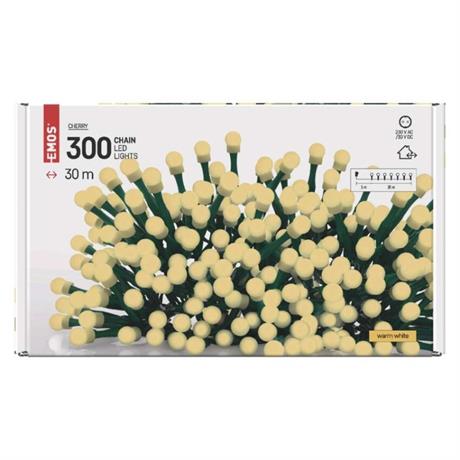 EMOS LED vánoční cherry řetěz – kuličky, 30 m, venkovní i vnitřní, teplá bílá, časovač