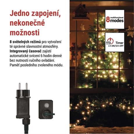 barva drátu: zelená|barva světla: teplá bílá|časovač: ano|dálkový ovladač: ne|další funkce: –|délka přívodu: 5 m|funkce: 8 módů (multifunkce)|jazyky aplikace: –|kompatibilita: –|krytí: IP44|LED mezera: 10 cm|materiál: PVC|možnost propojení: ne|notifikace do mobilní aplikace: ne|ovládání hlasovými asistenty: ne|počet LED: 300|podporované OS: –|použití: venkovní i vnitřní|přenosová frekvence: –|příkon: 6 W|prodejní obal: 1 ks, krabice|produkt: řetěz|protokol: –|pro výšku stromu: 250 cm|rozměr: 30 m|tvar: kulička|typ napájení: síťový adaptér|velikost LED: 10 mm|vstupní napětí: 230 V AC|výstupní napětí: 31 V DC|záruční doba: 2 roky|životnost: 10 000 hodin