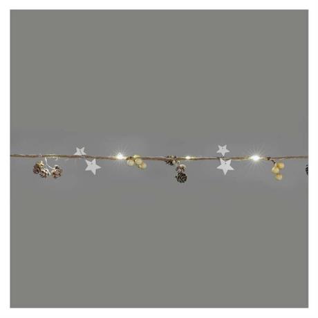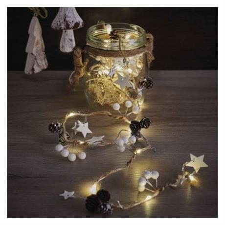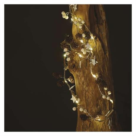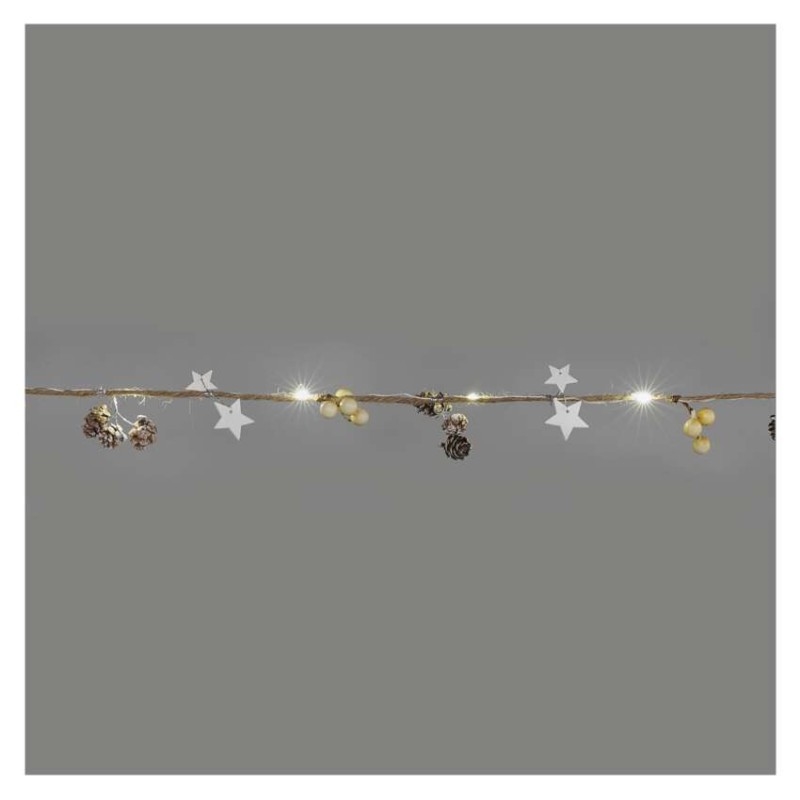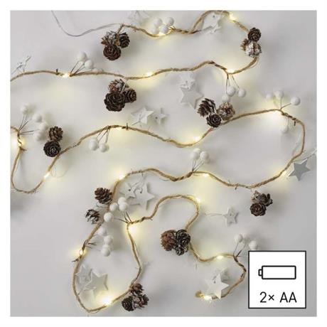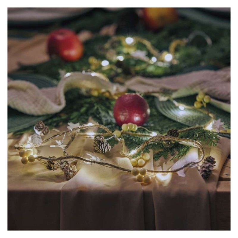 Chcete vánočně vyzdobit okna, zábradlí, slavnostně prostřený stůl nebo rozzářit vázy, adventní svícny a věnce? Pak právě pro vás máme vánoční svítící girlandu s šiškami, která je napájena AA bateriemi a hodí se do každého interiéru. Oceníte ji zejména v případech, kdy není žádoucí, aby byl celkový dojem z dekorace rušen přívodním kabelem nebo není dostupný zdroj elektrické energie. Své uplatnění nachází i při výzdobě dětských pokojíčků, kde odpadá starost o vaše nejdražší při manipulaci s klasickými zásuvkami. Díky napájení tužkovými bateriemi pro ni není žádný problém ani výzdoba stanu, obytného vozu či karavanu při pobytu v přírodě.