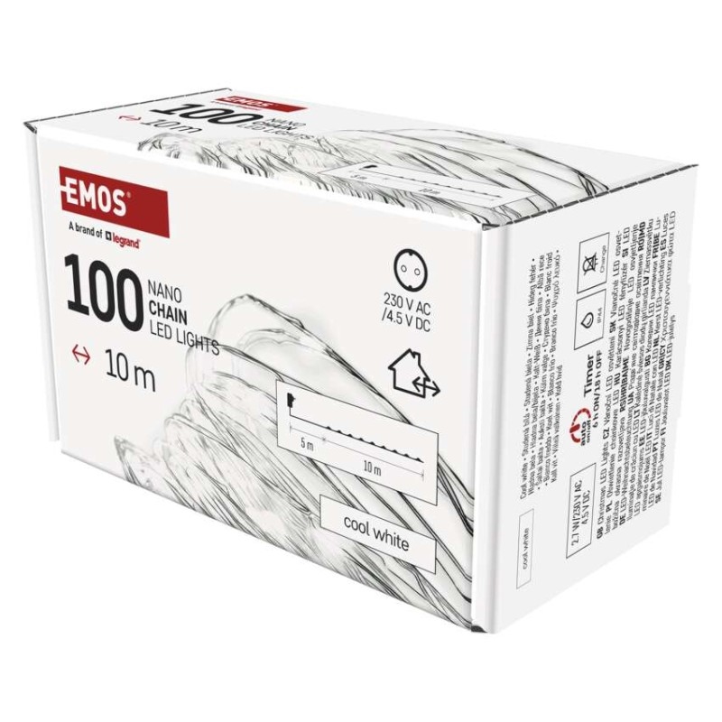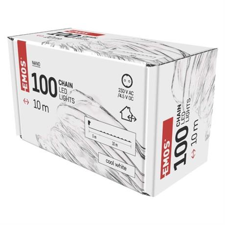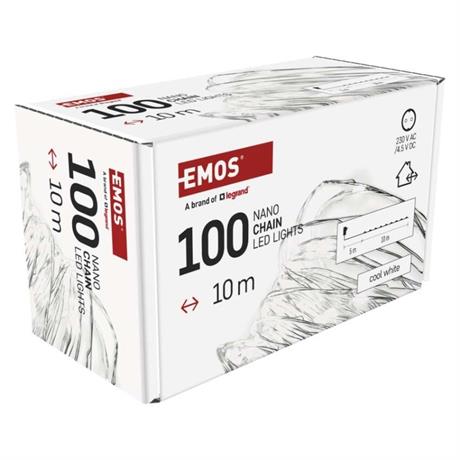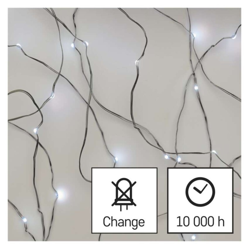EMOS LED vánoční nano řetěz stříbrný, 10 m, venkovní i vnitřní, studená bílá, časovač