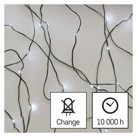 EMOS LED vánoční nano řetěz zelený, 15 m, venkovní i vnitřní, studená bílá, časovač