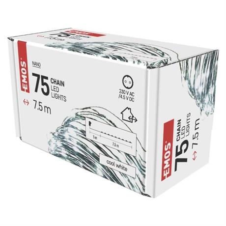 EMOS LED vánoční nano řetěz zelený, 7,5 m, venkovní i vnitřní, studená bílá, časovač