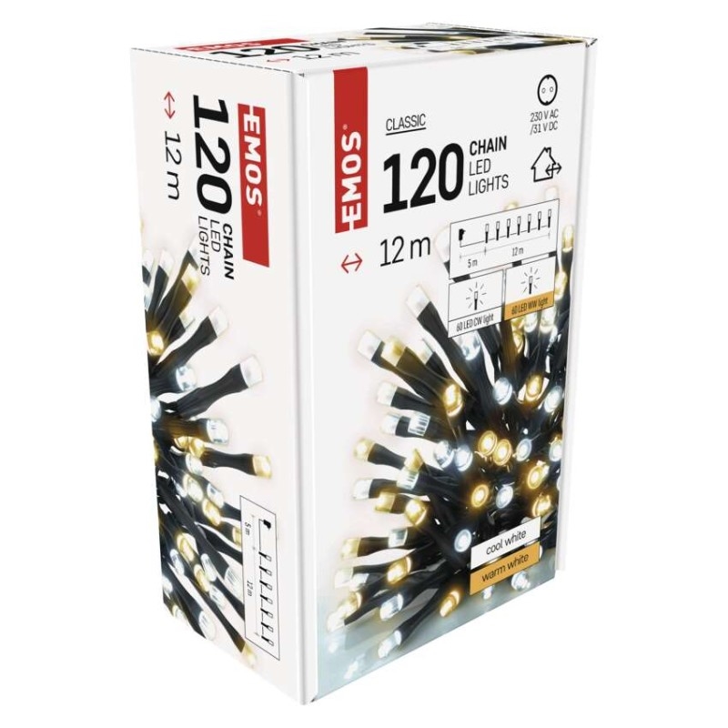 LED řetězy CLASSIC značky EMOS jsou nabízeny v několika tvarových variantách – klasické řetězy, clustery a krápníky. Jsou nepostradatelné pro vytvoření pravé sváteční atmosféry. Skvěle se budou vyjímat na tradičním vánočním stromečku, hodí se k výzdobě nábytku, zábradlí, trámů či dvěří v interiéru. Použít je můžete i v exteriéru, kde rozzáří vaše keře, stromy, pergoly, altánky apod.