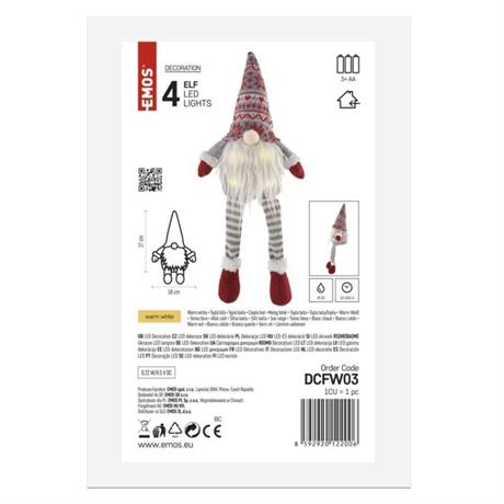 EMOS LED vánoční skřítek sedící, 27 cm, 3x AA, vnitřní, teplá bílá