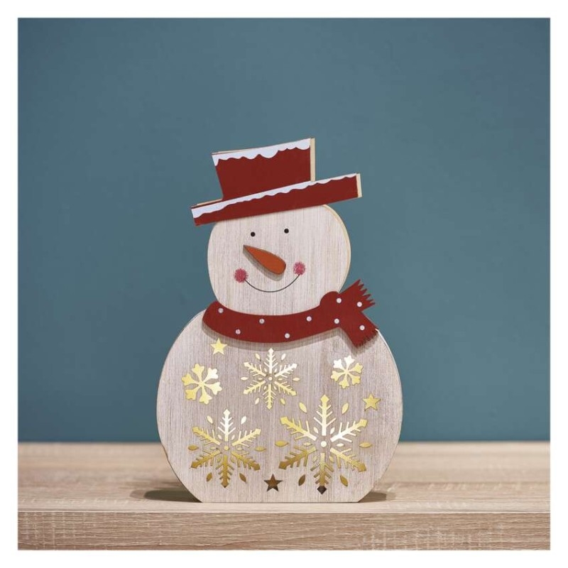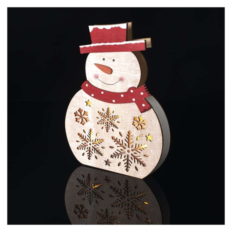 Dřevěné dekorace navozují atmosféru tradičních Vánoc charakteristických vůní perníčků, zvukem vánočních koled a nezaměnitelnou chutí bramborového salátu. Dřevěná dekorace sněhulák je vybavena příjemným teple bílým osvětlením. Díky napájení pomocí AA baterií ji můžete umístit na libovolné místo ve vašem interiéru a skvěle se bude vyjímat zejména na okenním parapetu, komodě či televizním stolku.