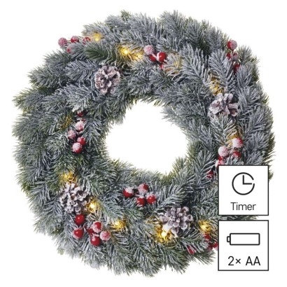 Hledáte vkusný adventní věnec zdobený větvičkami, které zůstanou navždy krásné a nikdy neopadají? Pak právě pro vás je určený zasněžený adventní věnec s 3D větvičkami, které jsou k nerozeznání od těch reálných. Zavěsit ho můžete na dveře, ale vyjímat se bude i na prostřeném stole, za oknem, na trámu, na dřevěné stěně nebo jen tak položený v interiéru. A aby byla atmosféra opravdu dokonalá, je věnec vybaven drobnými LED světýlky teplé bílé barvy, které jsou napájeny AA bateriemi. Chcete si věnec dozdobit například drobnými baňkami? I to je možné. Pracovat s ním můžete jako se standardní živou variantou, připevňovat na něj další ozdoby a vytvořit tak unikátní dekoraci.