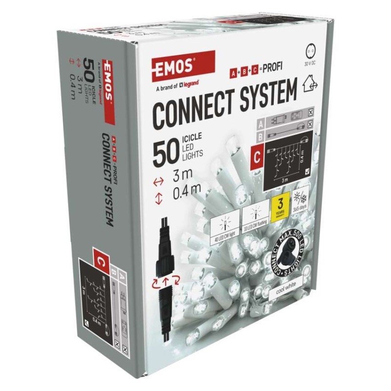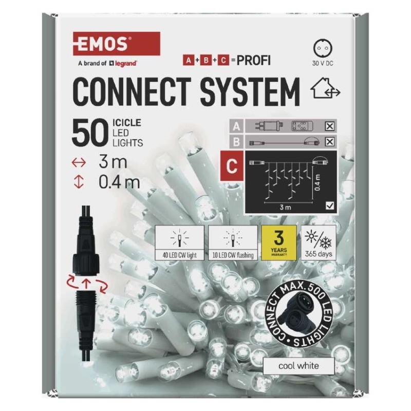 Světelné LED  krápníky (rampouchy) CONNECT SYSTEM PROFI jsou dispozici v délce 3 m a výšce 0,4 m. Hledáte-li barvu, která bude nejlépe ladit s exteriérem či interiérem vašeho domu, můžete vybírat z teplé bílé, studené bílé nebo barevných kombinací s více barvami LED světýlek na jednom řetězu.