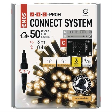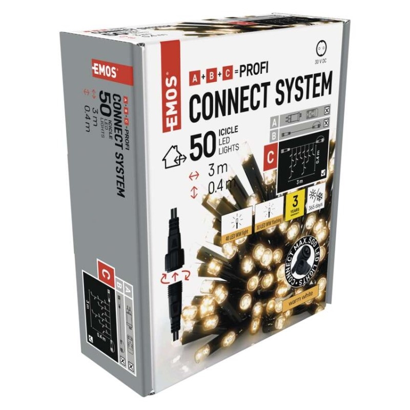 Světelné LED  krápníky (rampouchy) CONNECT SYSTEM PROFI jsou dispozici v délce 3 m a výšce 0,4 m. Hledáte-li barvu, která bude nejlépe ladit s exteriérem či interiérem vašeho domu, můžete vybírat z teplé bílé, studené bílé nebo barevných kombinací s více barvami LED světýlek na jednom řetězu.