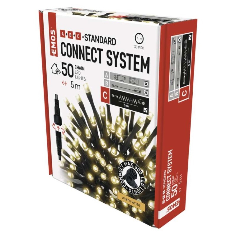 Světelné LED řetězy systému CONNECT SYSTEM STANDARD oceníte zejména při výzdobě domu po celém jeho obvodu, k ozdobení trámů, balkónů, venkovních altánů, přístřešků, plotů a okapů. Zapomínat byste určitě neměli ani na stromy na zahradě, kde se nabízí hned dvojí způsob zdobení. Tradiční spirálové zdobení, tj. odshora dolů nebo stále populárnější svislé zdobení, kdy řetěz přichytíte ke špičce stromu a spustíte dolů. Řetězy mezi sebou můžete vzájemně propojovat a kombinovat je s jinými LED světelnými prvky systému CONNECT SYSTEM STANDARD.