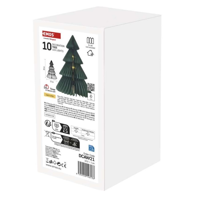 barva drátu: –|barva světla: teplá bílá|časovač: ano|dálkový ovladač: ne|délka přívodu: –|krytí: IP20|materiál: papír|počet LED: 10|použití: vnitřní|příkon: 0,45 W|prodejní obal: 1 ks, krabice|produkt: stromek|rozměr: 22 × 22 × 30 cm|typ napájení: baterie 3× AA (není součástí balení)|vstupní napětí: –|výstupní napětí: 4,5 V DC|záruční doba: 2 roky|zdroj svícení: LED|životnost: 10 000 hodin