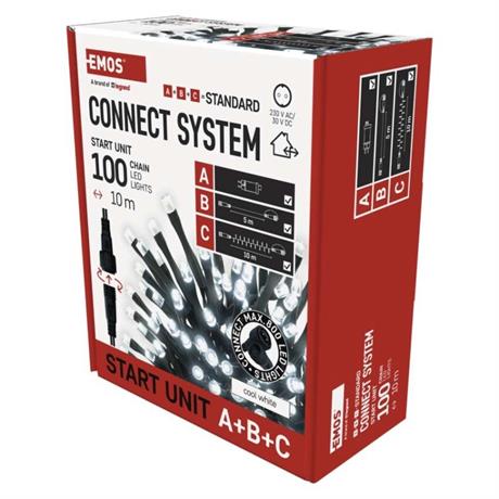 Propojovací systém CONNECT SYSTEM STANDARD je díky stupni krytí IP44 vhodný k vnitřnímu i venkovnímu použití, avšak pouze v sezónu, nikoliv po celý rok. Výhodou tohoto spojovacího systému je široká nabídka LED světelných prvků (C) v několika různých barvách. Ačkoliv je nejpopulárnějším vánočním osvětlením řetěz, ve spojovacím systému můžete vybírat podle vlastních designových preferencí z krápníků, záclon, sítí nebo hvězd na špičku vánočního stromu. Z jediného napájecího zdroje (A) připojeného k prodlužovacím kabelům, rozbočovačům (B) a světelným LED prvkům (C) je možné napájet až 800 LED světýlek.