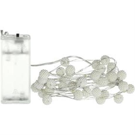 Girlanda s perlami 20 LED. . časovač. teplé bílé světlo. baterky v balení. . . Girlanda s perlami. Počet LED: 20. Barva světla: teplá bílá. Délka osvětlené části: 1,9 m. Délka přívodního kabelu: 0,3 m. Napájení: 2x AA. Pouze pro vnitřní použití. Krytí: IP 20. .