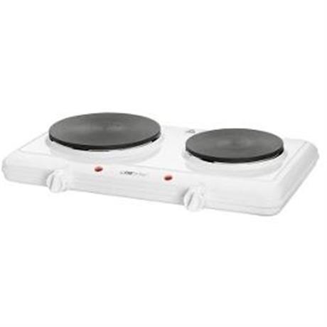 Elektrický vařič. CLATRONIC DKP 3583. . Počet plotýnek 2. Průměr plotýnek 18 cm a 15 cm. Plynule nastavitelný termostat. Kontrolka provozu. Tepelně odolný a robustní plast. Cool touch povrch. Výkon 1 500 W a 1 000 W. Napájení je 230 V, 50 Hz. Ideální pro cestování i pro domácí použití. . Barva bílá