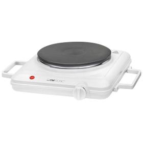 Elektrický vařič. CLATRONIC EKP 3582. . Počet plotýnek 1. Průměr plotýnky 18 cm. Plynule nastavitelný termostat. Kontrolka provozu. Tepelně odolný a robustní plast. Výkon 1 500 W. Napájení je 230 V, 50 Hz. . Barva bílá