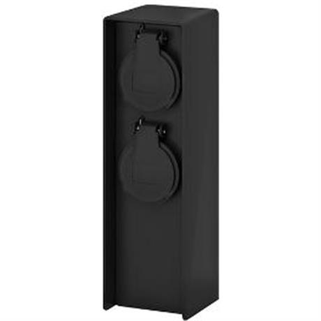 Venkovní zásuvka. Solight zahradní sloupek IP44, plast, 2 zásuvky, hranol, černý. . Specifikace. plastový elektrický rozvodný sloupek. přívod elektrické energie do venkovních prostor, zahrad a sadů. 2 zásuvky max. 16A, 3680W, dětské pojistky a samouzavíratelné krytky proti vlhkosti a prachu. svorkovnice s uzemněním pro připojení přívodního kabelu uvnitř sloupku. základna s montážními otvory do pevných povrchů. barva: černá. třída ochrany: IP44. rozměry: 7,0 x 6,8 x 23cm