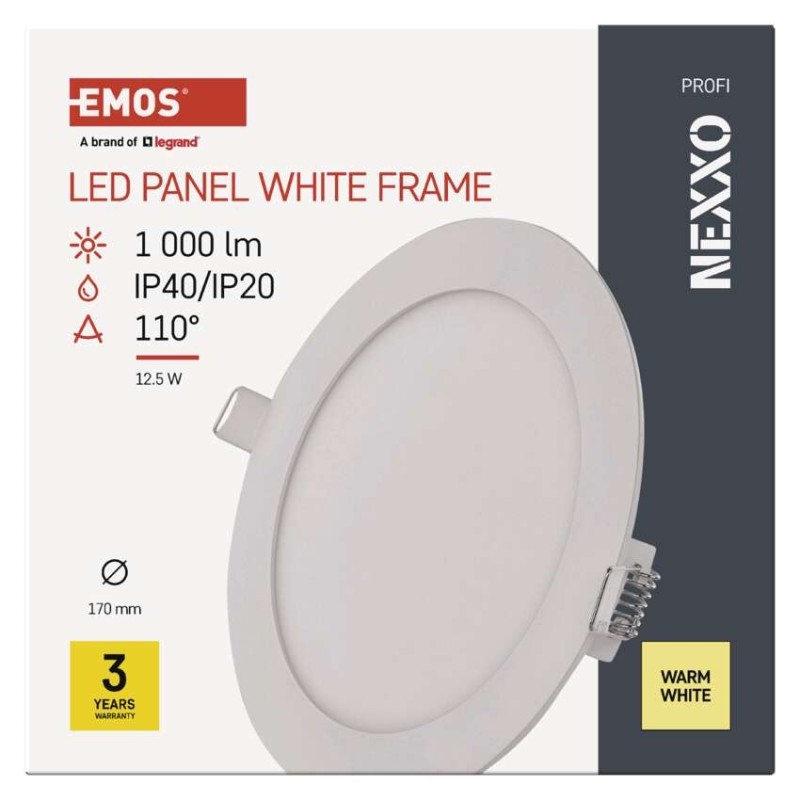 EMOS LED vestavné svítidlo NEXXO, kruhové, bílé, 12,5W, teplá bílá