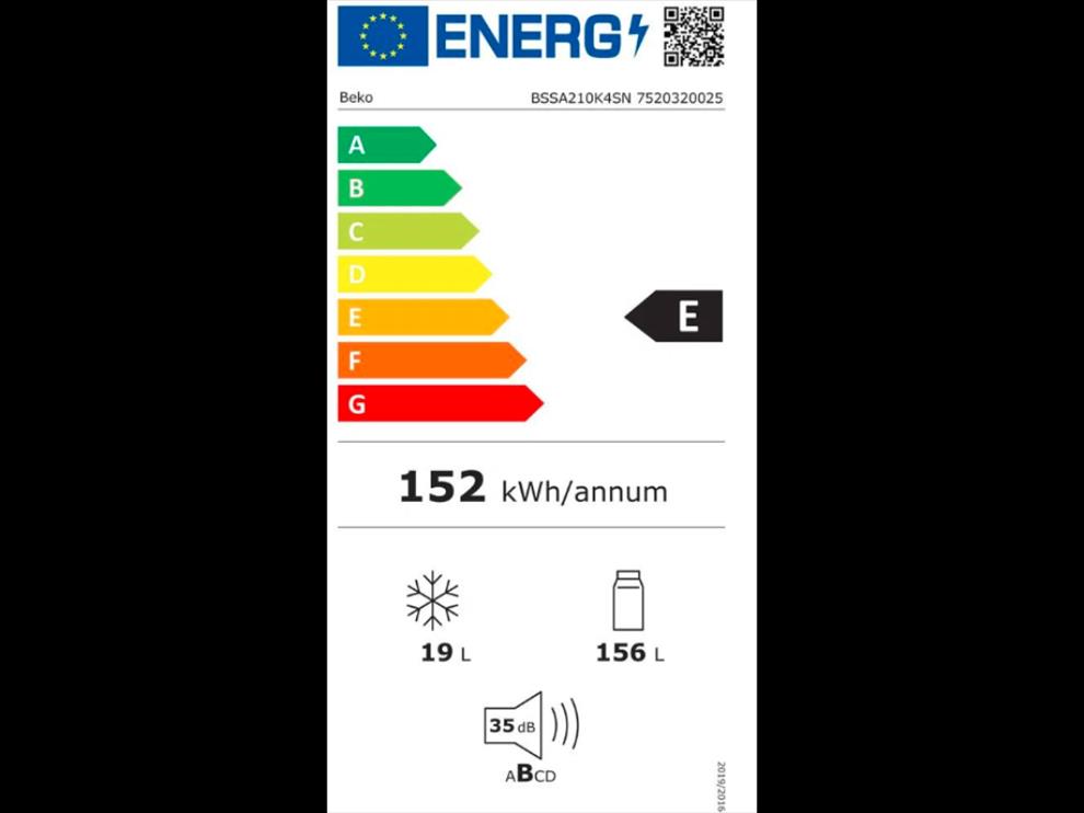Vestavná lednice s mrazákem, objem ledničky/mrazáku 156/19 l, energetická třída E, hlučnost 35 dB, LED vnitřní osvětlení, technologie MinFrost, možnost změnit směr otevírání dveří