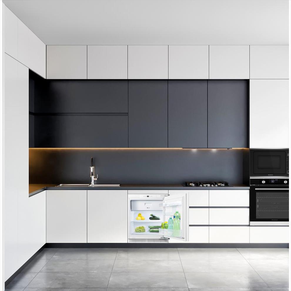 Vestavná lednice, objem 121 l, hlučnost 39 dB, SuperFreeze, displej a dotykové ovládání, senzorické řízení provozu, skleněné police s nastavitelnou výškou