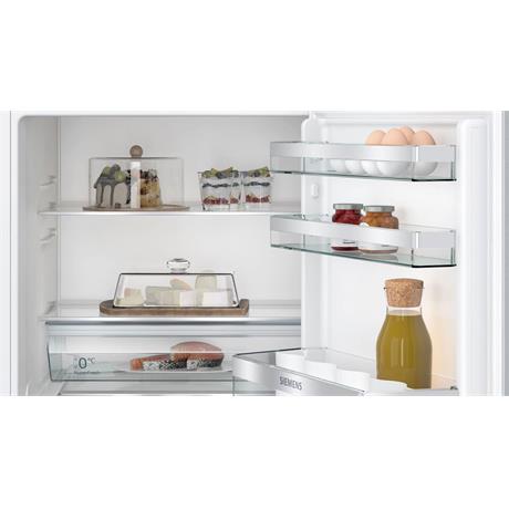 Siemens iQ500 KU21RADE0 je vestavná jednodveřová chladnička s celkovým objemem 134 l. Pro potraviny jsou určeny 2 poličky a jedna zásuvka storagePlus ve spodní části zásuvky. Ta je určena pro čerstvé maso a ryby, protože udržuje teplotu kolem 0 °C. V celé lednici je pomocí technologie autoAirflow chladný vzduch rovnoměrně rozprostřen, díky tomu zůstanou potraviny déle čerstvé. Díky aplikaci Home Connect budete mít o chladničce přehled skrze váš mobilní telefon.