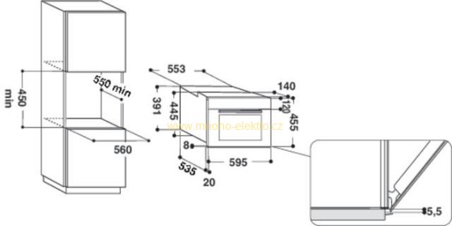 | • Rozměry otvoru pro zabudování (vxšxh): 450x556x550 mm |