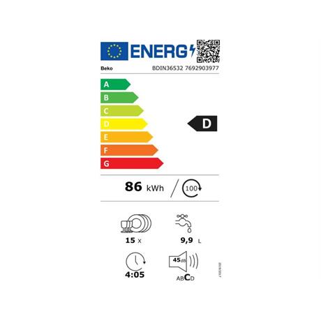 Vestavná myčka nádobí Beko s 6 mycími programy a LCD displejem. Energetická třída D, odložený start a celková kapacita 15 sad…